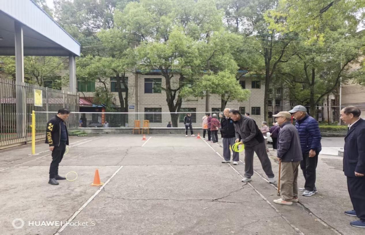 本次比赛活动分别在东校区和西校区举办,西校区为离退处旁操场,东校区为“师范新村”9栋周围区域。运动会精心设计了四个适合老年人身心特点的比赛项目,既有考验手眼协调与稳定性的“投掷实心球”、“定点投篮”,还有充满童趣与挑战的“套圈”、“投镖”。许多老同志在运动会现场兴致高昂,全情投入,沉浸在比赛的乐趣中,现场笑语不断,气氛热烈非凡。